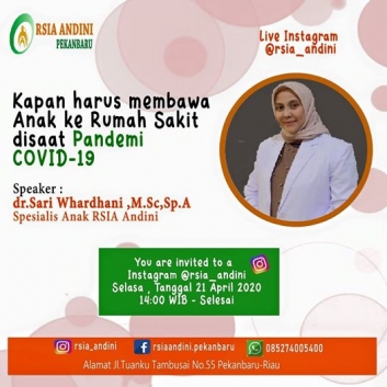 Ayo jangan lewatkan Live Talkshow di instagram @rsia_andini Hari Selasa tanggal 21 April 2020 Bersama Dokter Spesialis Anak dr. Sari Whardani, MS,c,Sp. A